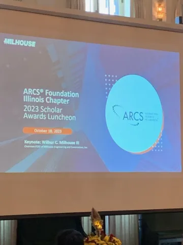 The ARCS Foundation Illinois Chapter gathered in downtown Chicago for the 2023 Scholar Awards Event on October 18. More than fifty members, guests, and donors enjoyed the Scholar poster session and a keynote address by Wilbur Milhouse during lunch.